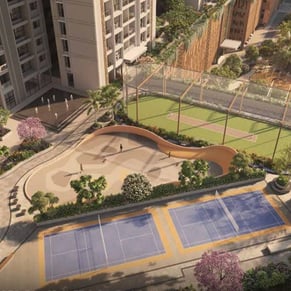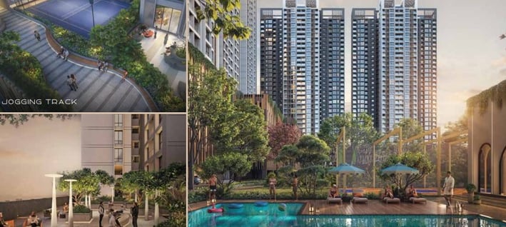 50+ world-class amenities including a swimming pool, gym, and kids’ play area
